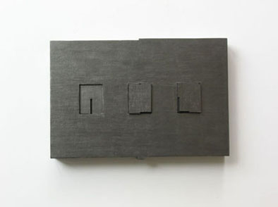 graphite, wood panel, perforation, 2004, 20x29,5x8 cm