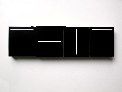 SERIES "ASIMILATION : CONTAINEMENT " polyptyque wood panel, acrylic paint 31x60x4 cm Coll. Artist, 2008