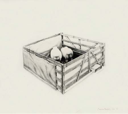 "Rabbit Series" - Pencil Drawing 1980 70x100cm (Private Coll.) "Mouton" - Pencil drawing 1976 22x25cm (Private Coll.
